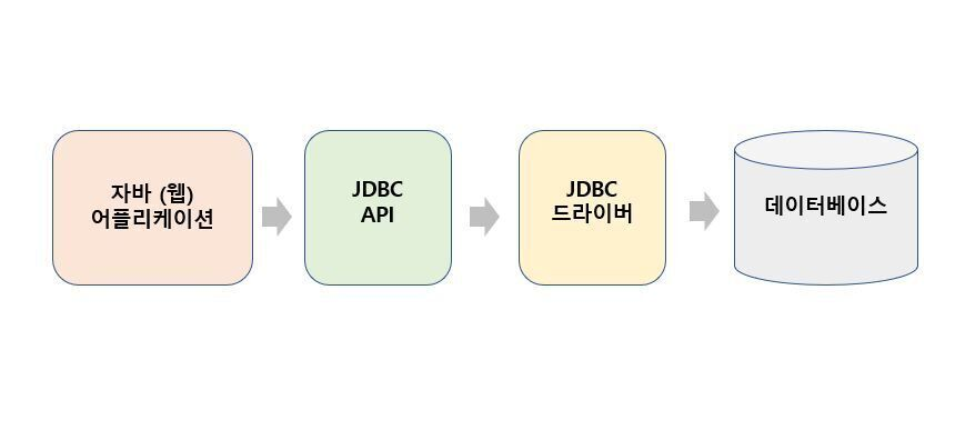 • 자바 애플리케이션에서 데이터베이스에 접근하기 위해서는 JDBC API를 이용해서 데이터베이스에 접근하고, JDBC API는 JDBC 드라이버를 거쳐 데이터베이스와 통신을 한다.